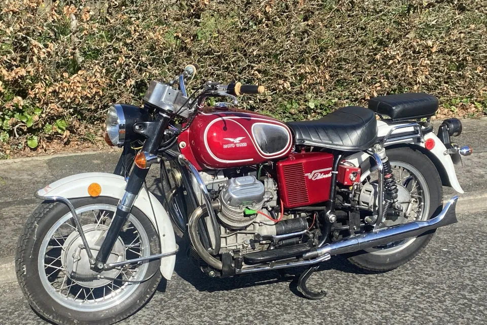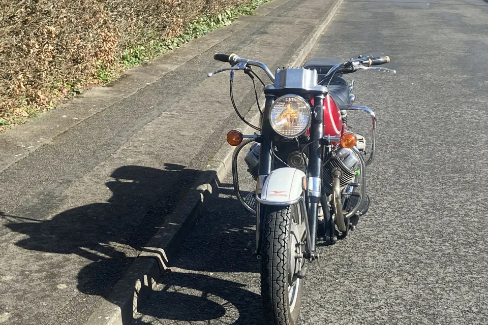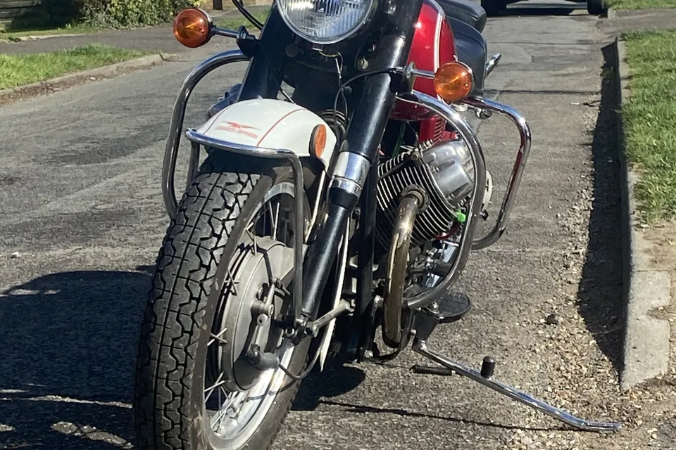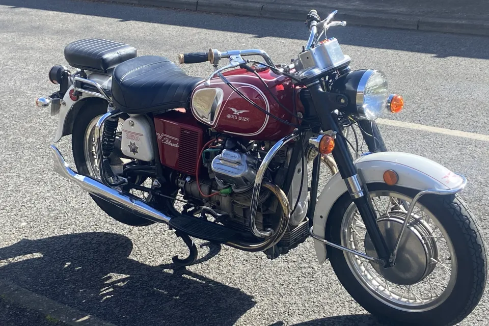 1974 Moto Guzzi Eldorado in good condition. As Pictured. 5 speed 850cc with Side stand. centre stand. Semi police spec, police dash, foot rests, exhaust. USA scrambler cycle alternator conversion. Greg Bender (Thisoldtractor.com) replacement wiring harness. Guilardoni replacement Nikasil barrels and pistons. Single driver seat. (Police spec) as well as a new Italian made pillion cushion, still has an Ultra rare B&M police friction siren. This bike is a nice runner as well as a good looker, it is advertised on Fb Marketplace where the scammers are doing my nut in. (I will not pay for a vehicle inspection, if you want one you pay for one) It has a V5 in my name, its a 74 M Plate, it was inported from the USA. It has had a new battery, oil change, recent new coil and condensor as well as new petcocks (One developed a leak, but all good now) it can be heard running (Video ) on the market place add filmed today whilst out on a ride.