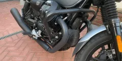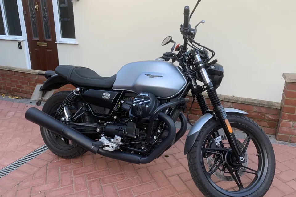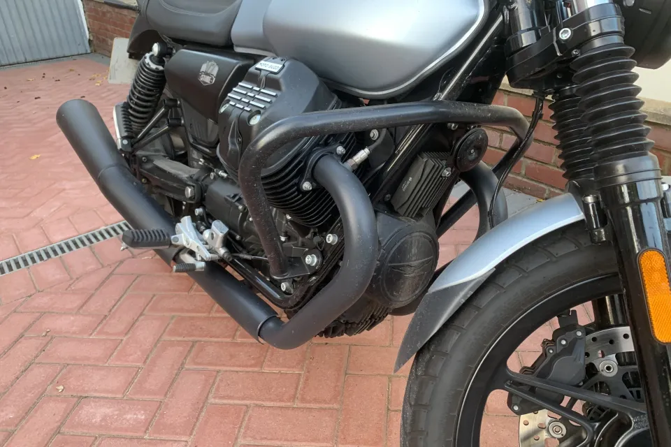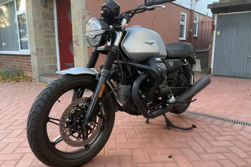 Much loved, cosseted and with a full Moto Guzzi service history this bike is 100% reliable and has hardly been ridden in rain… In current, weekend use, it is a pleasure to ride, had a new pair of Bridgestone BT46 tyres fitted in November. Spaan engine bars, a front mudguard extender, the genuine Guzzi centre stand and the USB power point fitted. This is a great V7. It changes gear smoothly, is easy to select neutral and is a wonderfully handling pleasure to ride. It comes with both keys as well as the Guzzi service history, it has also received an additional oil change/service at 4,200 miles when I bought it as well as the Guzzi 900/6,200 mile services. I have also fitted the sump, final drive, etc. with stainless Allen screws to replace the standard plated fasteners. Final drive oil changed early at 11,500 miles. Buy with confidence.