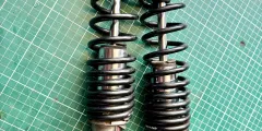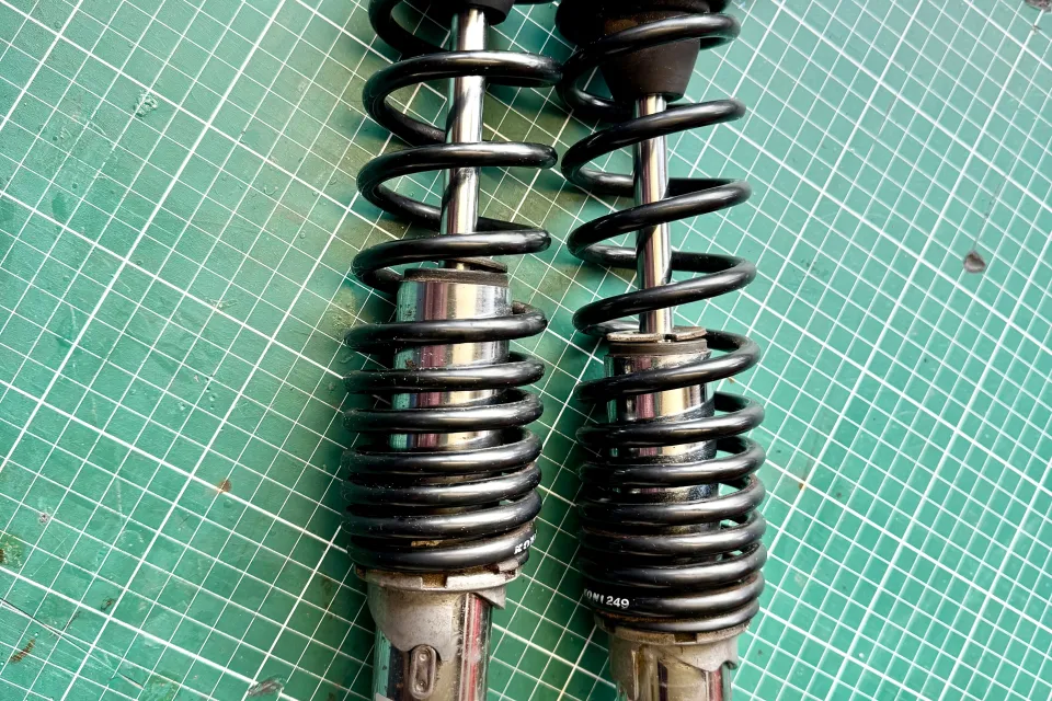 A pair of used Koni original fitment shock absorbers. Chrome body with black spring. Guzzi part number 31.55.02.40-0. Koni type 7610-1282 SP5. Good condition, used for 25,000 miles. Adjustable preload and damping still work, but too soft for my weight. Originally fitted to 1991 750T, but will fit 750SP, 750 Strada, 750 Targa, and several 650 models.