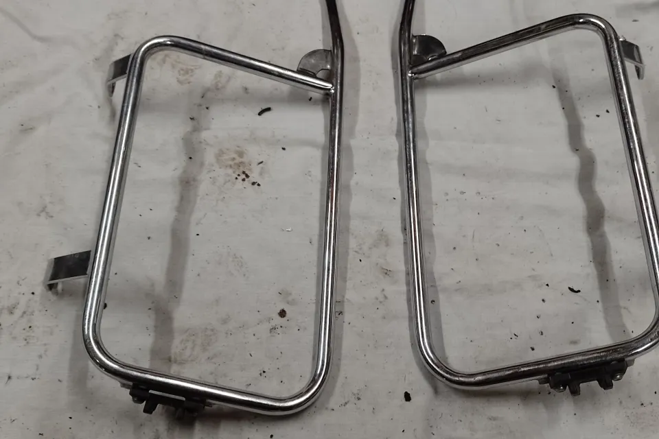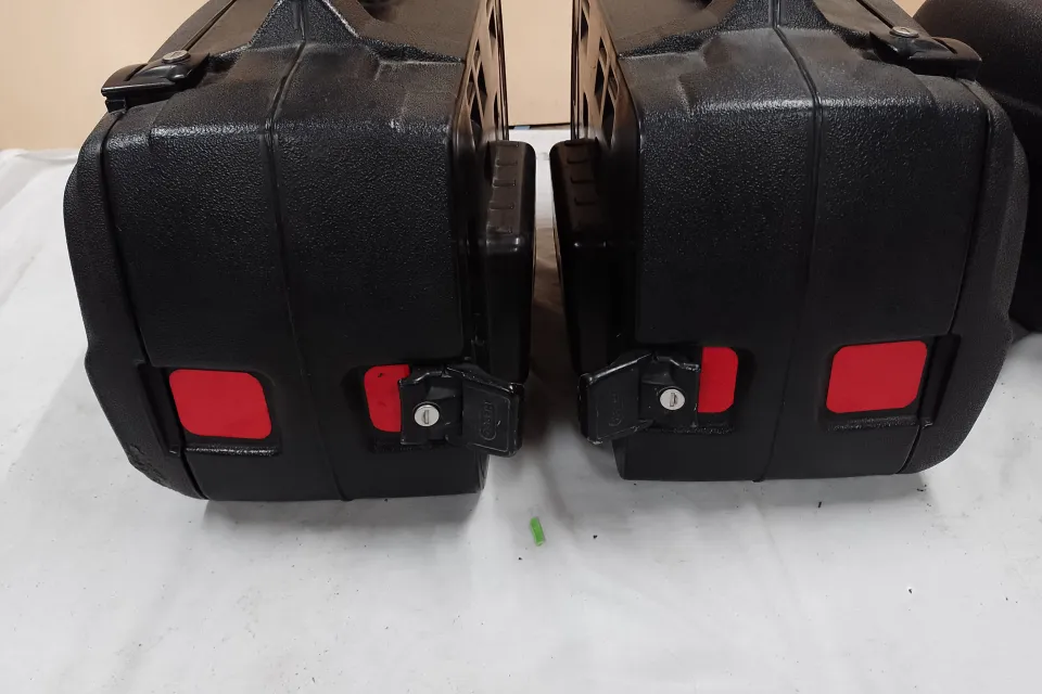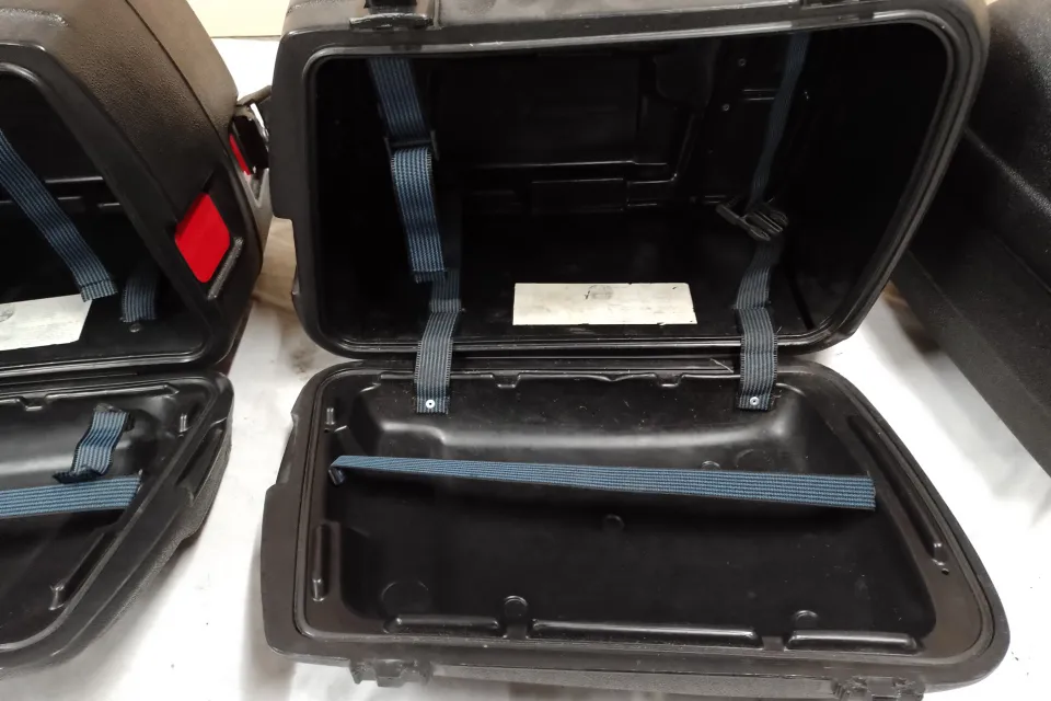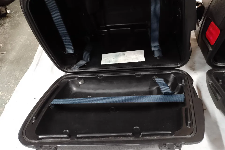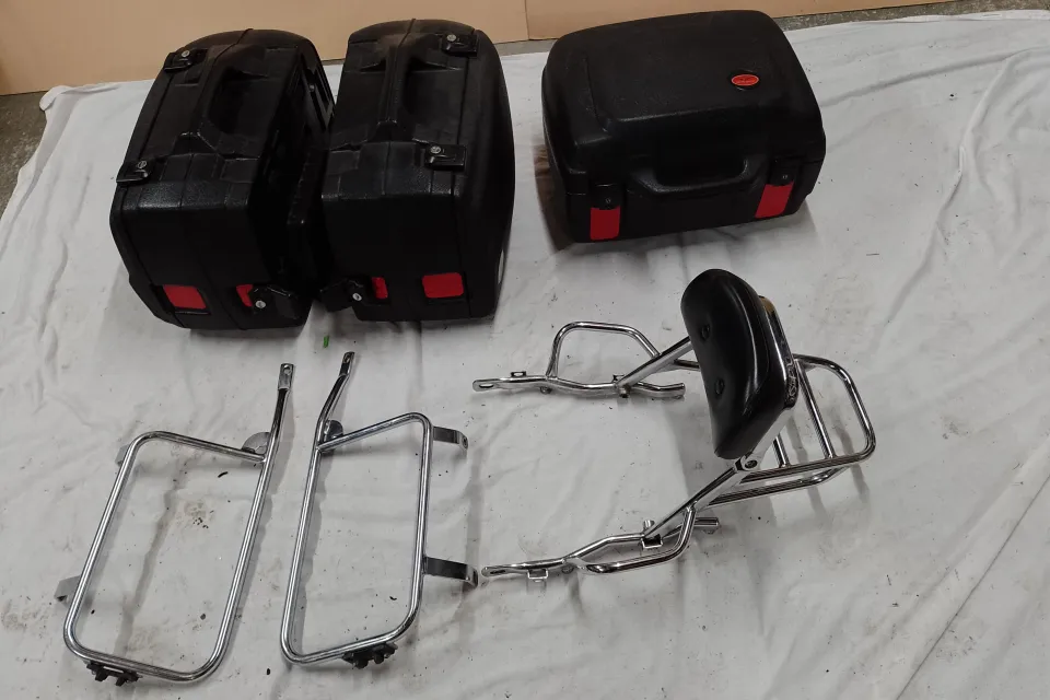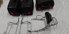 California/Stone EV rack with backrest, panniers and topbox. The rack is in good condition except for a scrape on the right hand side. One pannier has been cracked and I have repaired it and the hinge has been refixed. I haven't used these as I don't like panniers, racks etc but they do appear usable. £150.00. Collection only from DE56.