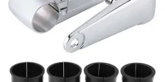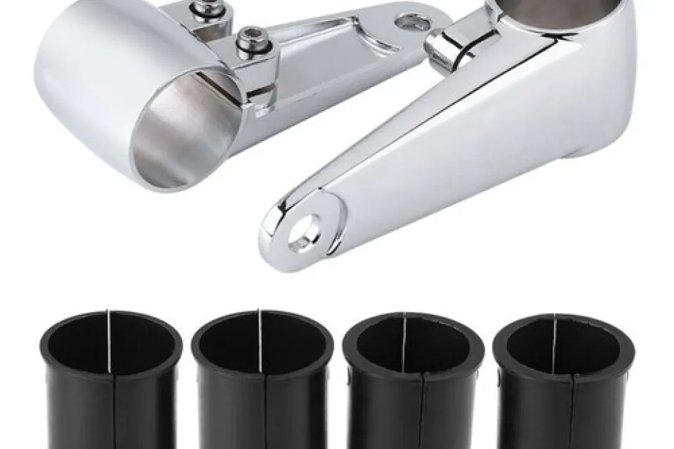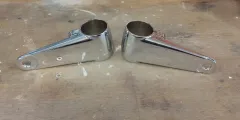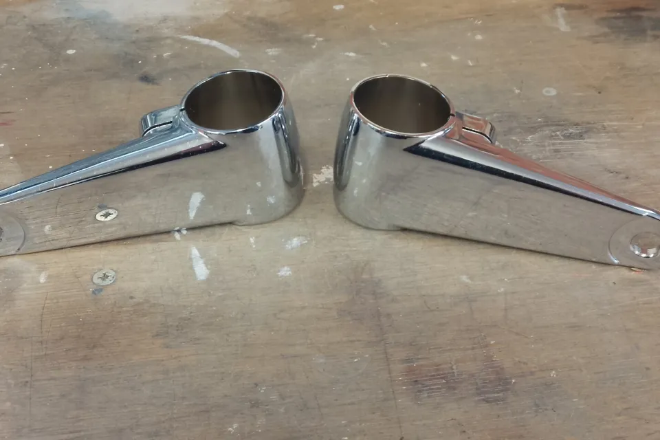 1 set chrome plated headlight brackets. Fit 35-41mm fork legs. £15 + £3.55 postage.