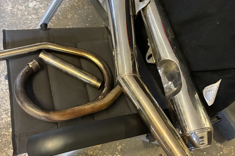 Complete system in used condition. Will polish up really well. Just needs the clamps.