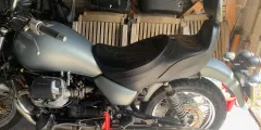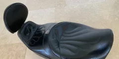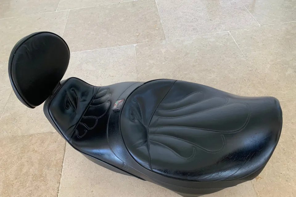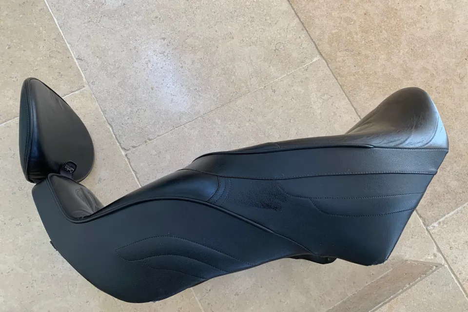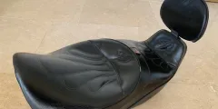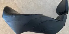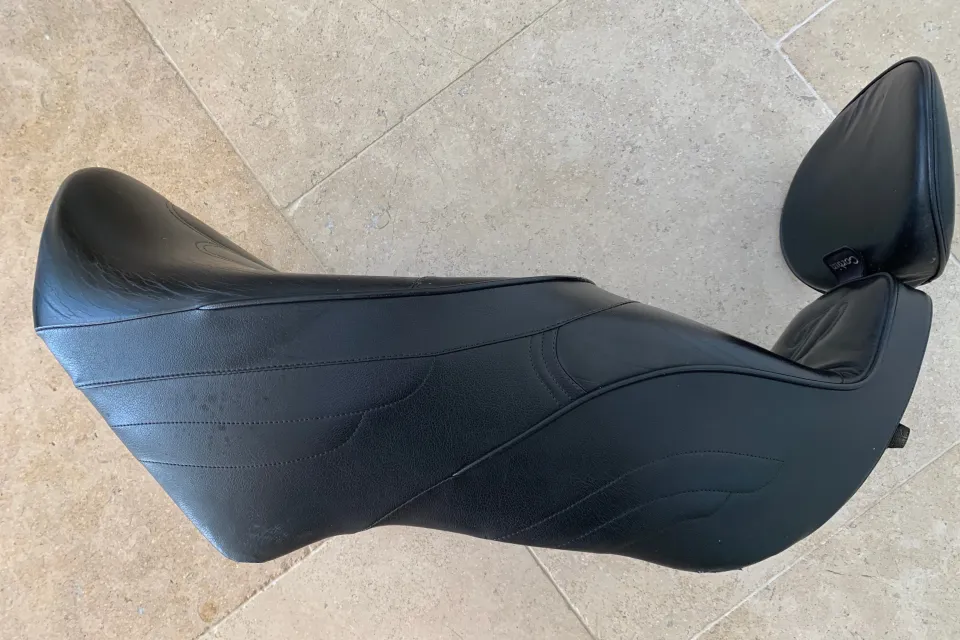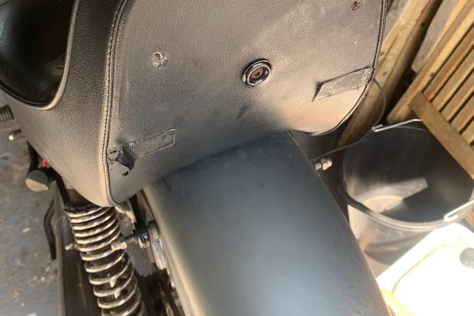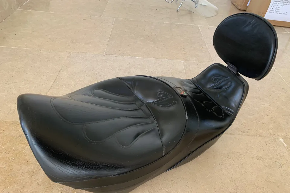 Overall great condition, some marks where it has been stood on the ground and at the back. These were for the EV1100, but fit the Jackal or similar version of the bike, if there is the luggage rack to hold it in place. The seat is bolted through the backrest on the rack to secure in place. These are super comfortable seats and are a great improvement on the original fit seats with leather seat areas and the removeable back rest, which is bolted in place.
