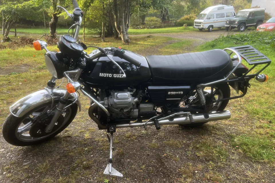 Historic vehicle, two owners, 43K, new battery, new main wiring loom, fresh oil and filter and transmission oils, stainless brake lines and exhaust system, period Krausers with key, Cali sidestand. Frame and wheel paint not wonderful, but a nice old bike. £5,300. Near Inverness.