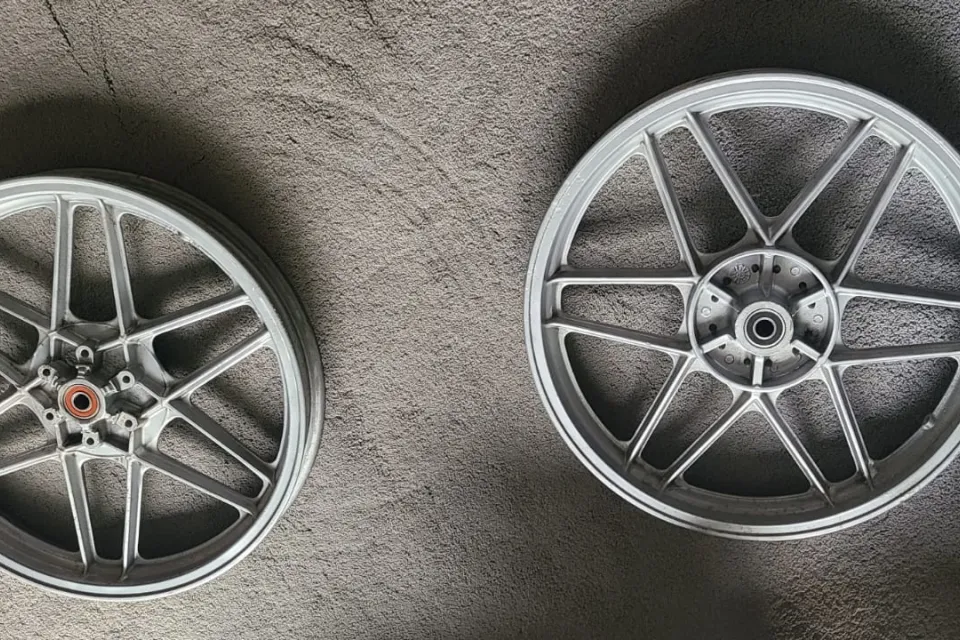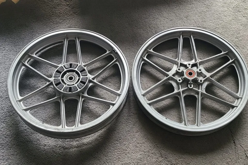 No longer required, front and rear V50 wheels - powder coated. Good bearings and rubber bushes.