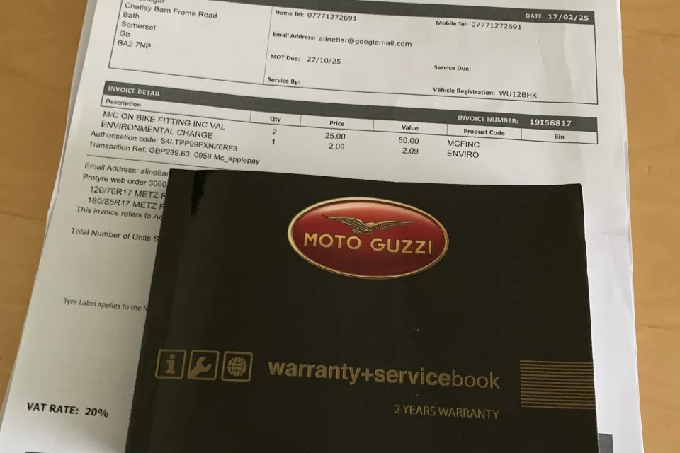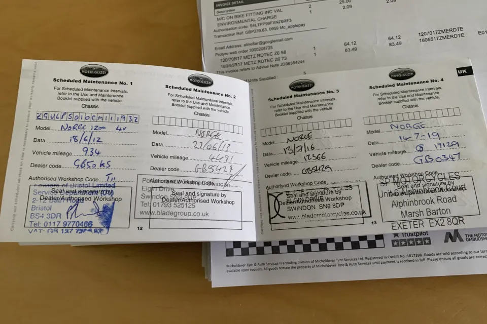 Black Norge 1200 8V GT, with all the luggage. I put new tyres on this year, all works as it should. It has had the roller conversion by the previous owner, which I have confirmed, see receipt for parts from Gutsibits and I took rocker cover off to check.