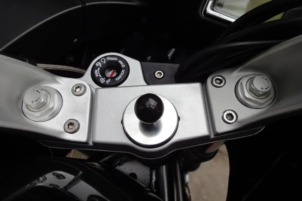 Custom made RAM mount for an 8V Norge, to fit through the fork stem. Might be suitable for earlier models as well? Free to anyone who can use it, though paying the postage would be appreciated.