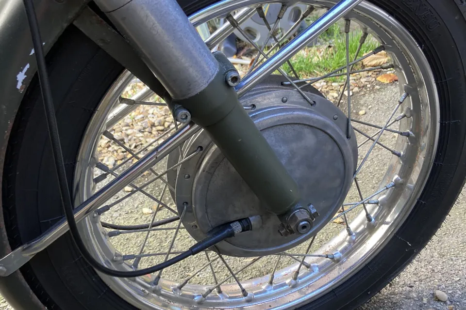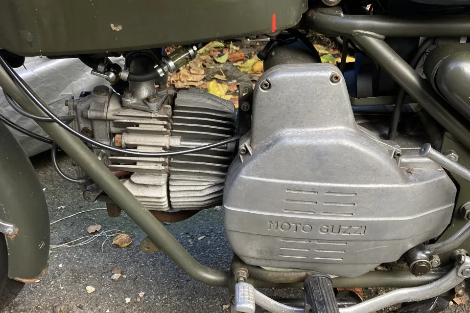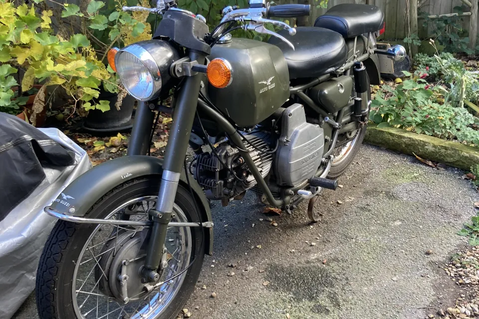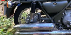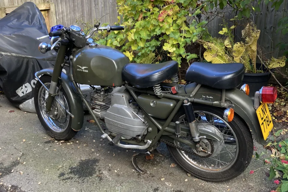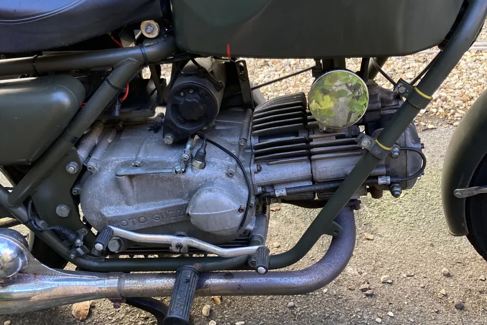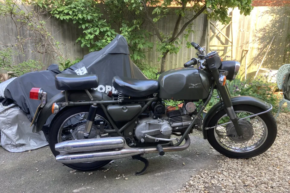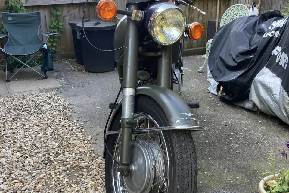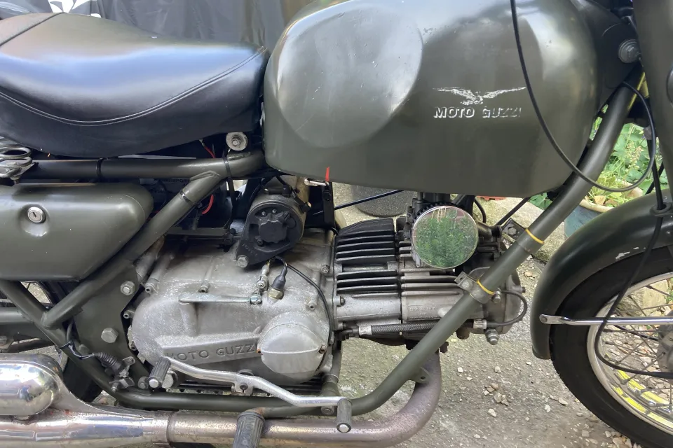 Nuovo Falcone Militare classic 500cc single 1972. Tax and MOT exempt. This is a ride and restore bike and priced with that in mind. The photos give the best idea of general condition. The forks are soft and require maintenace or possibly new internals before riding any distance. There is a little rust on the front wheel rim and pitting on other brightwork. Original piggy back exhaust is solid and working well. Engine starts easily - there is a method for this. There are no leaks. It has the oil feed to head upgrade and an oil cooler mounted behind the rider's saddle. The engine does not smoke or rattle and pulls strongly with the throttle open and ticks over happliy when warmed up. The dual single seats are in very good condition with no holes or splits. Currently running with a modern air filter but the original air filter box comes with the bike should you wish to use that instead. There are also a few miscellaneous spares in a small box. Drum brakes are very strong. There is also a folder full of info and a print out of a manual plus a number of magazine articles.