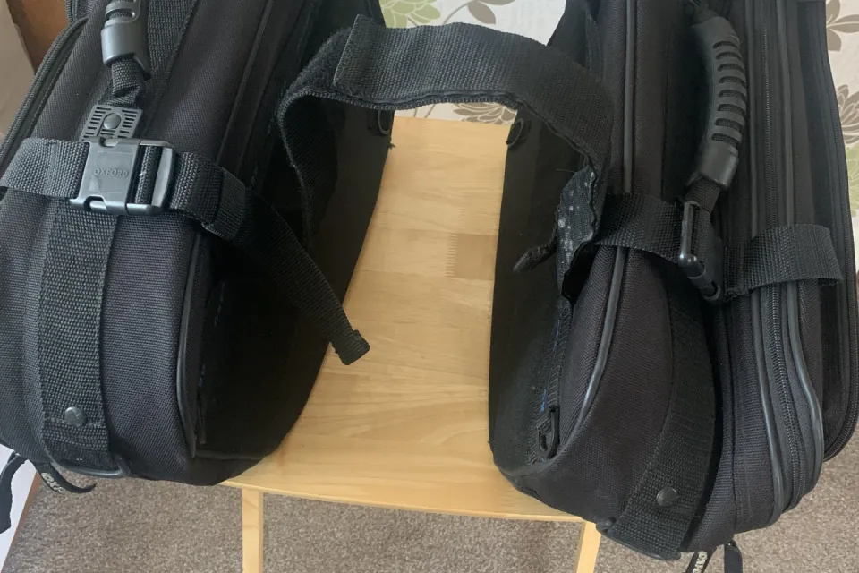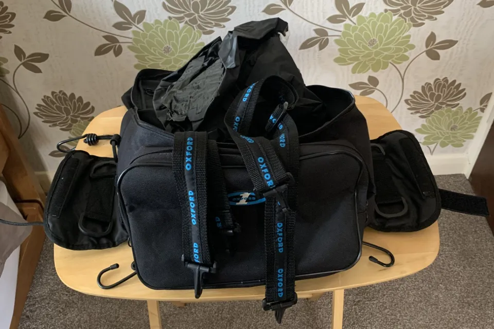 For sale used Oxford soft luggage, throw over panniers with raincovers, tail pack with raincover and magnetic tank bag.