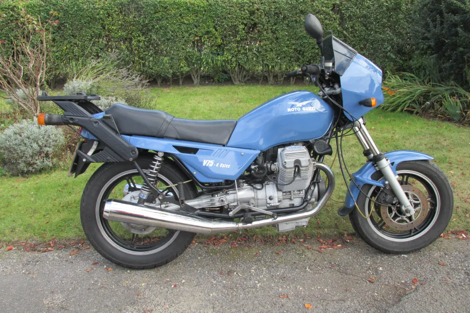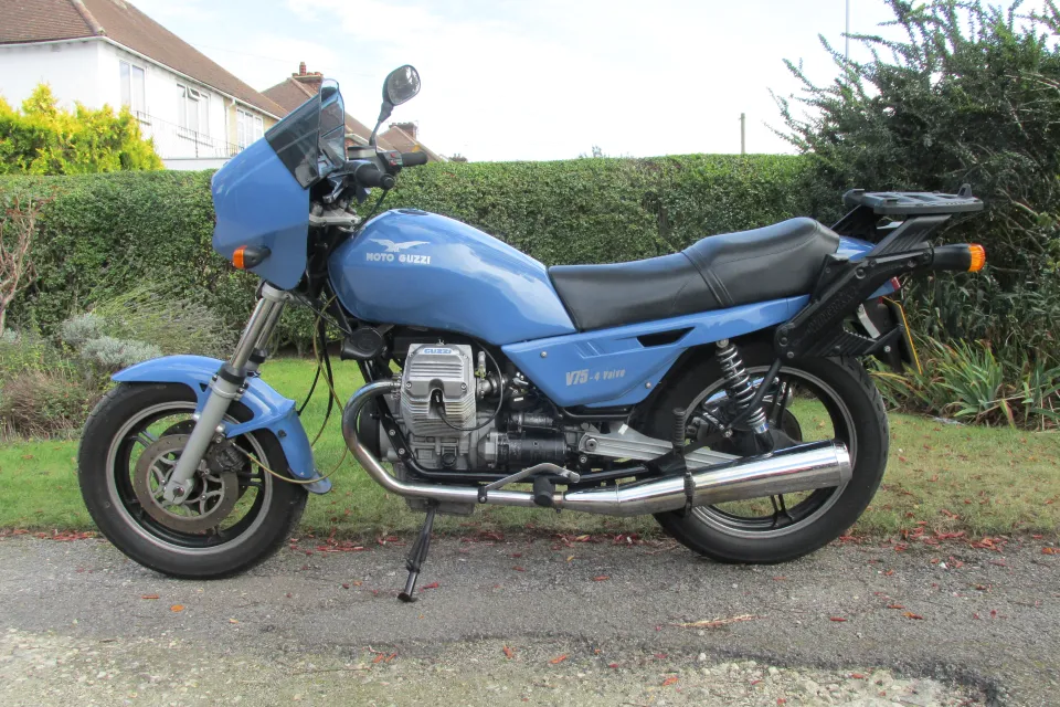 RARE 1986 Moto Guzzi V75 4-valve. 44k kms (28 k miles). Owned by me for 14 years. Totally reliable in that time, but now getting too heavy for my 79 years. So, reluctantly, its time for it to move on. The bike was imported by North Leicester Motorcycles in 2005. The previous owner had it professionally re-sprayed 'French blue' and the frame powder coated. All control cables were renewed together with new Dell-Orto carbs, new ignition pick-up, 'Ignitech' programmable ignition, 'Hagon' rear shocks, Suzuki GN250 valve springs, one-piece valves with lash caps (recommended as the original valve-springs were about 4x too stiff), stainless brake hoses and fasteners. A new Metzeler front tyre and battery were fitted and the rear Brembo brake master-cylinder refurbished in April 2025 and by necessity the brake fluid was replaced. MOT tested until May 2026 with no advisories - ever! It will come with much supporting paperwork and receipts plus a copy of Richardson's 'Guzziology' 6th edition. Currently on SORN, but I will tax it for any serious potential buyer to roadtest and ride home if their insurance allows. Garaged nr Maidstone, Kent.