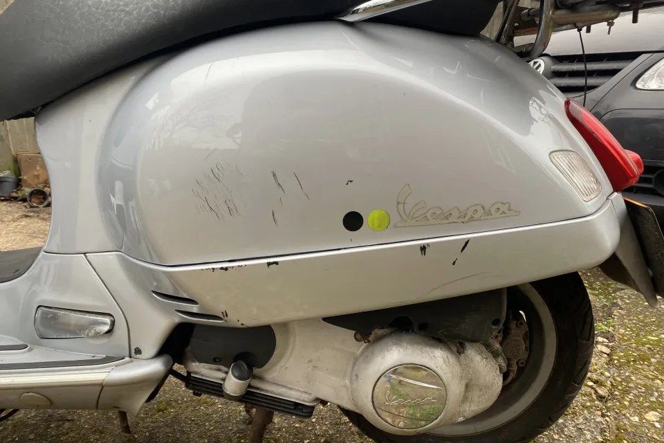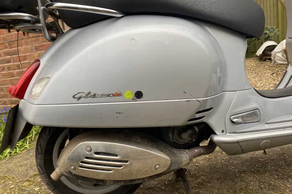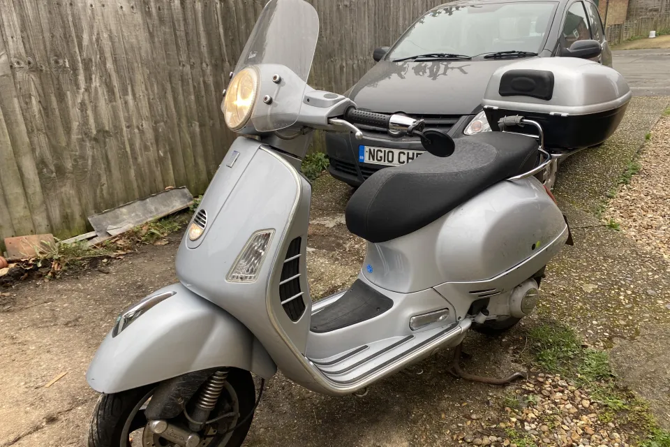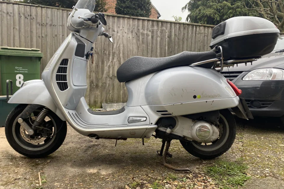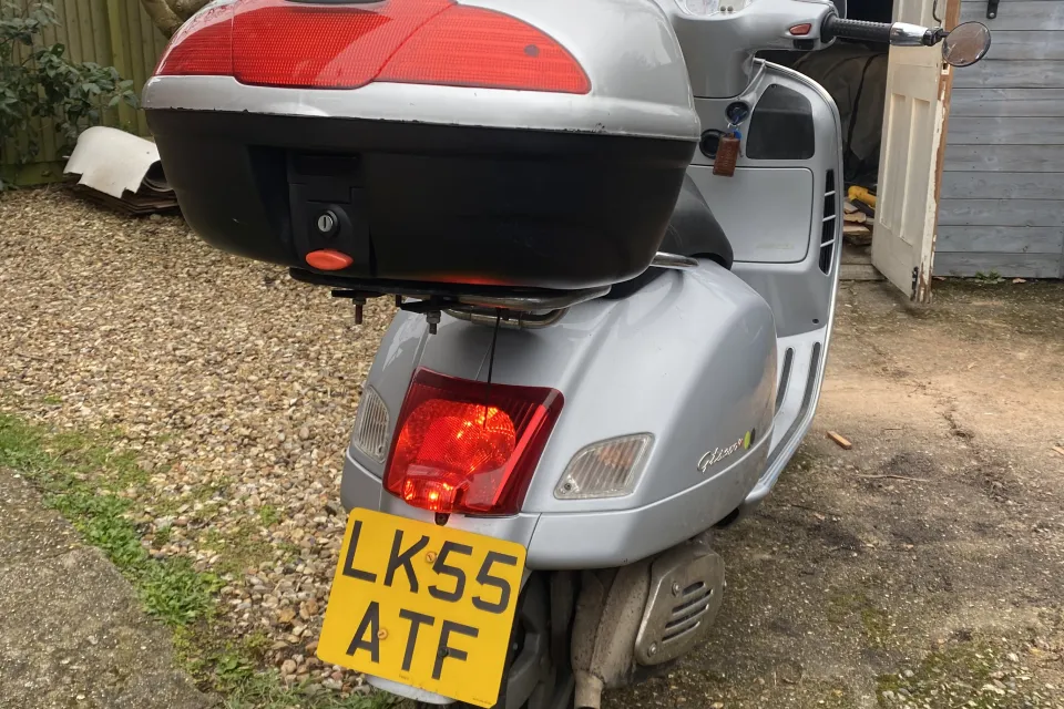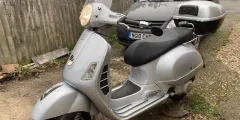 Great Italian scooter. Runs and works as it should. 12 months MOT, 19,000 KILOMETRES ( not miles). I have had the bike for about 9yrs. It’s been in dry storage for the last two years. Before it went into storage new tyres and brakes sorted. Currently SORN. Earlier in its life it was stolen/ recovered ( before I bought it). Body work scratches and a lovely dint in the front leg shield( see photos). However a tidy scooter that needs a new home, great deal of fun. Comes with a top box, winter riding blanket and a Haines manual and the all important extra brown Vespa key. Based in the Reading area. A lot of scooter for £850