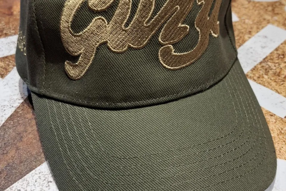 Two embroidery choices; Olive on Olive, or Light Gold on Olive.