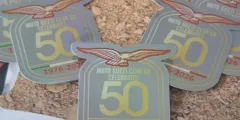 Celebrating the clubs golden anniversary, these pearlescent self-adhesive vinyl stickers will look great on your luggage or screen.