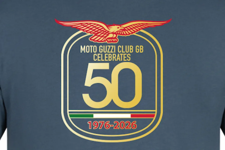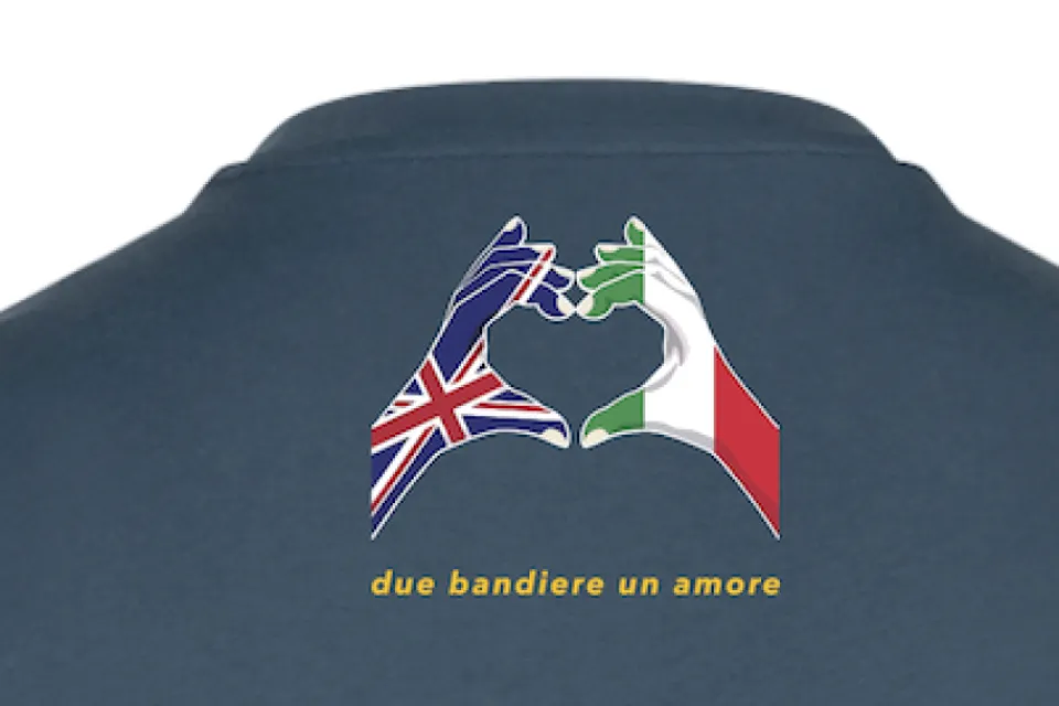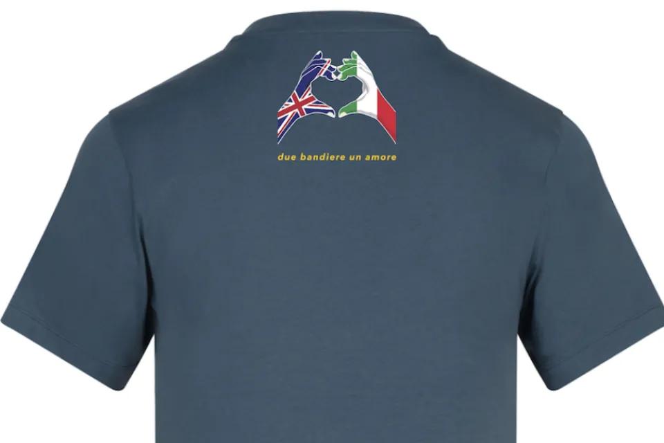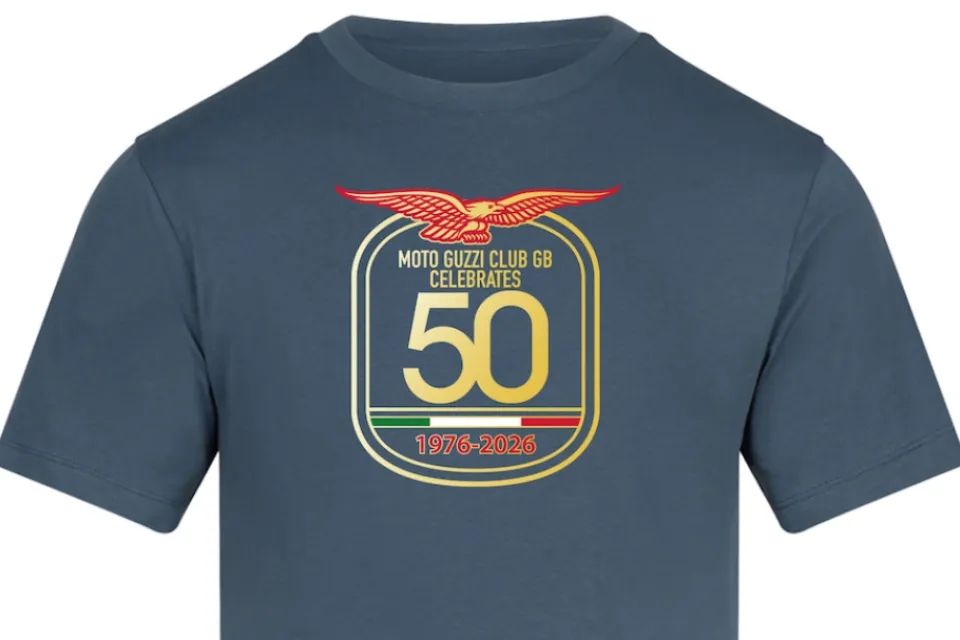 Available in Air Force Blue ( a nod to the Moto Guzzi founders) and Black, with the clubs celebration year design on the front and the 'two flags one love' motive to the rear neck line.